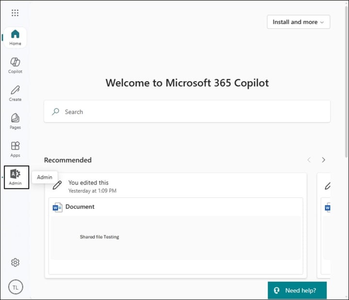 - On the Microsoft 365 homepage, click on Admin to navigate to Microsoft 365 admin center.