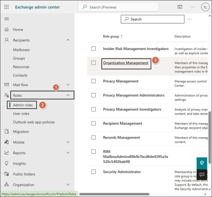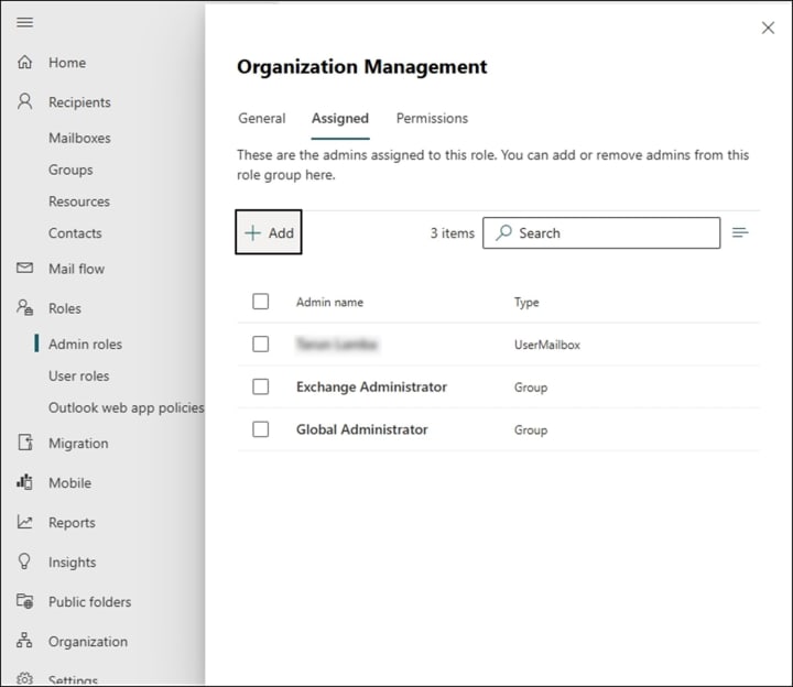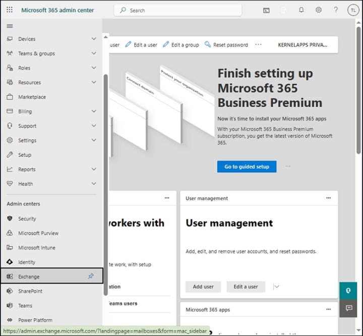 - Choose Exchange from the Admin center section to open the Exchange admin center.