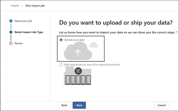 - Then, select the Upload your data option and click on Next to proceed.