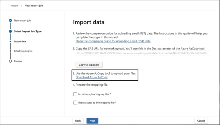 - Download the Azure AzCopy tool to finally start the import process.