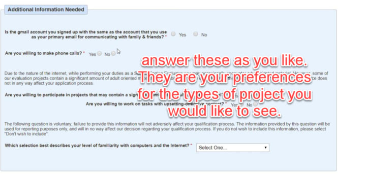 Then, you will be asked some questions that will help them understand your preferences regarding the projects. You can answer them according to your own and click the “Submit” button. Here are some of the questions:
