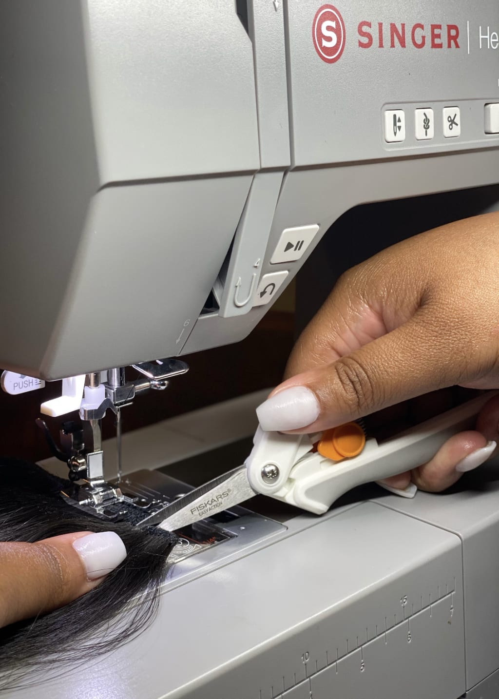 While performing my craft, I use the Fiskars 5” Easy Action Micro-Tip Softgrip Scissors to complete quick snips of the thread and hair wefts while sewing. These scissors have been essential in ensuring that I keep my work neat and clean from start to finish. You know how those families on HGTV have a list of must-haves when searching for homes? Well, the Fiskars 5” Micro-Tip Softgrip Scissors are my must-have item for my craft. When it comes to my craft, Fiskars play a vital role in creating my happiness!