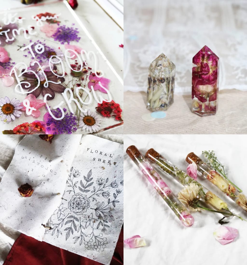 Resin is pure magic when it comes to preserving beautiful things! It can be shaped to fit any mould, so the creative possibilities are truly endless. A personal favourite of mine is creating altar worthy faux crystals.