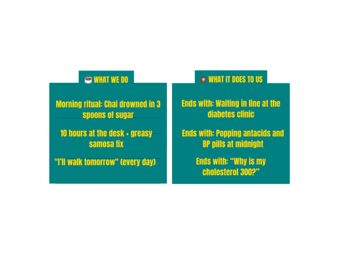 *"This isn't fearmongering - it's a wake-up call. If you're done normalizing burnout and *butter chicken* as 'culture,' hit share. Let's heal, not just exist."*