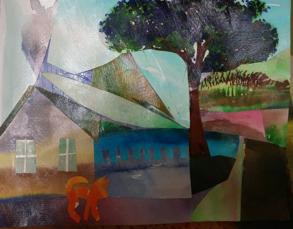 The day our ginger cat disappeared, I've used the same method to dream up a perfect home for the cat and us while waiting for his return. And he did return that night. Ginger was a stray cat who adoped us a few years earlier and loved his adventure. And even though he is no longer with us, I still cherish that particular collage as a beautiful reminder that even if those we love are no longer around, they keep living in our memories. I realise that my heart can produce an impression of Love as a whole from the many fragments – the same way my collage being created from the imperfect pieces.