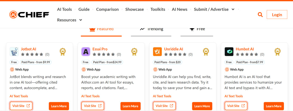 Let’s say you’ve developed an AI-powered text summarizer. You list it on a site like AIChief, in the “Writing Tools” category. Within a week, your listing starts getting views, and a few users leave positive reviews.