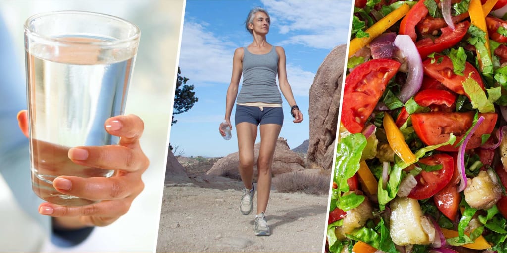 Morning: Start your day with two glasses of warm water to prevent constipation, eliminate toxins, stimulate blood flow, relax muscles, and control body fat.