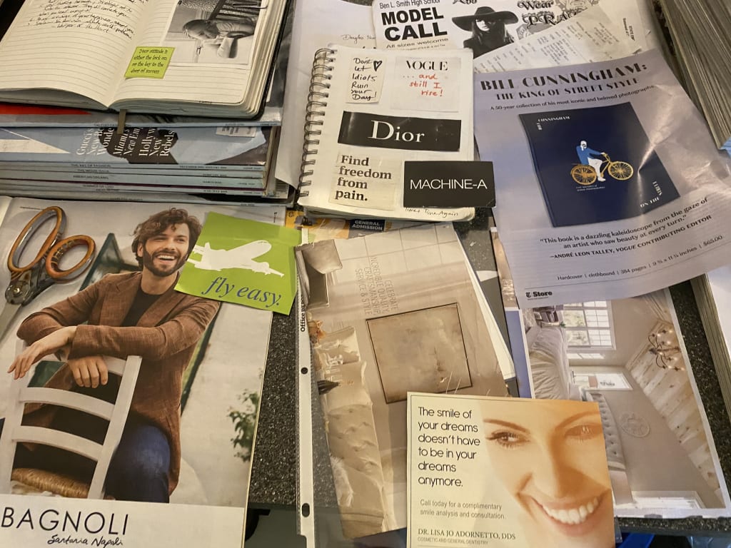 Friendly fashionista talks of turning dreams into reality by cutting out inspiring imagery from creative publications and pasting them into binders of bliss.
