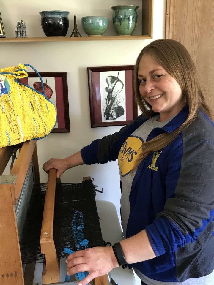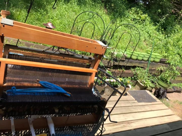 Once Quarantine hit, I found every healthy way possible to distract myself from missing my students which included even lugging my loom outside.