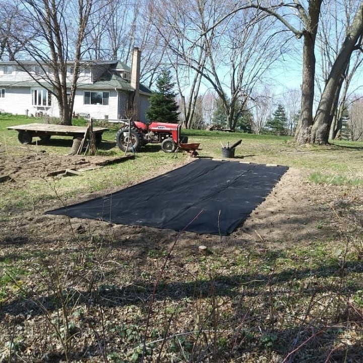 I didn’t want to deal with too many weeds and was just figuring out the best ways to make this patch thrive. I laid down some landscape fabric to both keep my rows straight and to shake its fist at weeds.