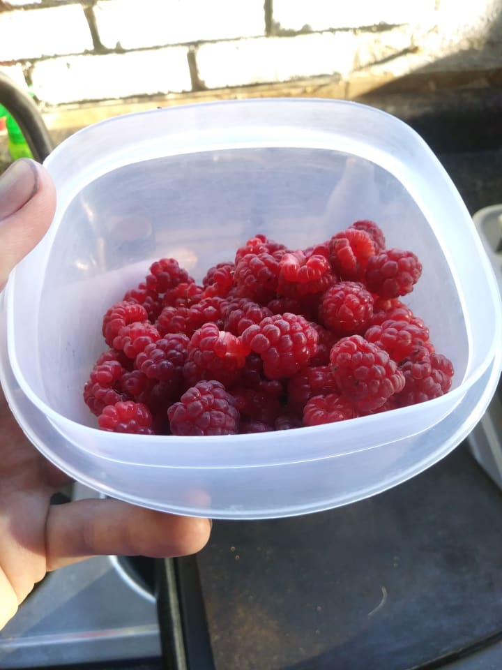 When I was growing up, I remember having rows of raspberries I could walk through. It was so cool to just walk in the front yard and pluck fresh fruit off some canes and eat them right then and there. We had red raspberries and black raspberries growing. How many rows and how big they were I don’t remember. I only remember eating fresh berries.