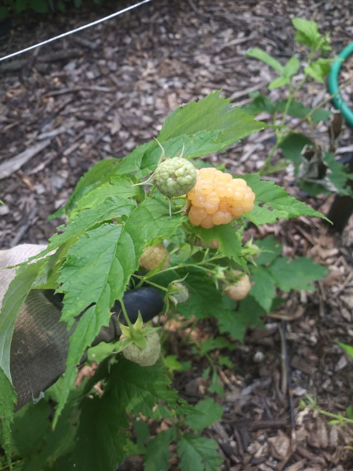 I was so excited about how great these black raspberries were doing and how the red raspberries have multiplied that I forgot about the yellow raspberries that suddenly fruited after the black raspberries were done. My first yellow raspberry and it was homegrown, and giant.