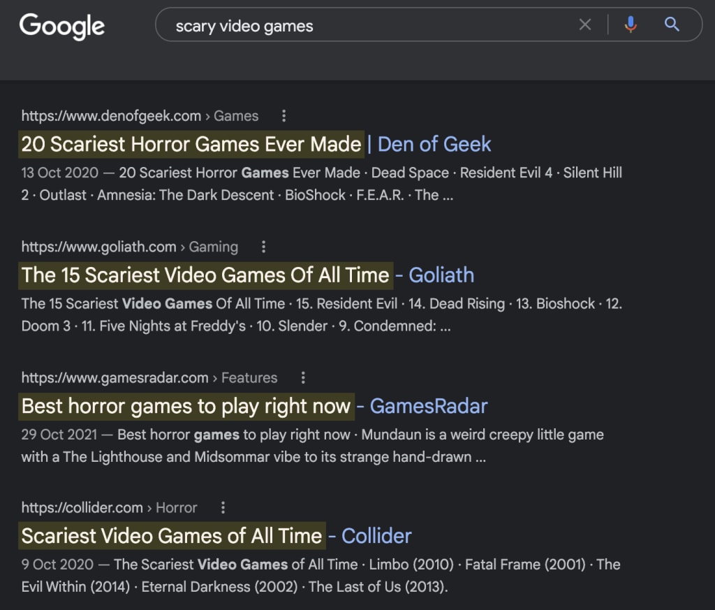 Assuming you take a gander at the highest level pages in Google for this catchphrase, you'll see that each and everyone is a blog entry posting terrifying computer games