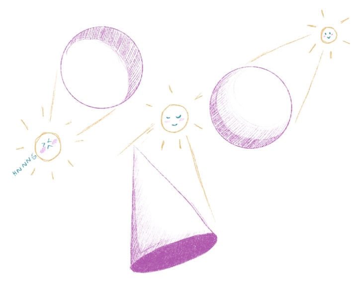 - Move on to shading your spheres and cones at different angles, with different lighting directions and intensities so you really get a hang of the basics.