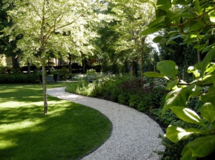 If you don’t like the clean symmetries in the one above, it is possible to bring more color to your backyard by mixing up your plants and foliage. Incorporate plants that are profuse bloomers or bushes that don’t go taller than your fence. This gives an ethereal look to your backyard!