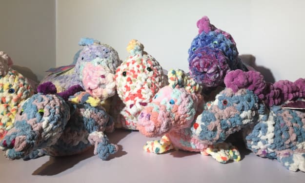 Creating My Happiness With A Thunder Of Dragons Once upon a time there were dragons. But this isn’t a story about just any dragons. These dragons are soft and cuddly. With green safety eyes. The first dragon was Dulcimer, Dulci for short. He was big, fluffy and unruly. I knew it was up to me to tame him into the dragon I conceived him to be.