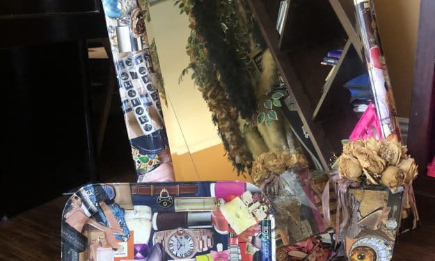 Magazine ads and photographs go through a rigorous vetting process in order to make the cut. They are scrutinized, compared, and with today’s technology, tweaked and enhanced. The photos that make it are there because professionals in this extremely competitive cutthroat industry of publication have found them to have the highest quality. Someone has had their finest work put into print. We admire them once. Twice if they are lucky. But my Fiskar scissors and I make these photos timeless. By carefully cutting out those images using the silhouettes and outlines, I now have the byproducts of a design. These intricate and unique shapes create art that tells a story, reveals a passion, or simply ties images brought together by color, and by subject. I puzzle them together to create my favorite pattern… Random. A collage of shapes overlaid and sit together to create a wallpaper of design. But not just to look at. To use. To serve. A utility. A beautiful utility. And thus is the suffering of a Practical Artist. Not just enough to be beautiful. The importance is also in its usage. And within that is recognizing that even the simplest of items we use every day can become a beautiful works of art. To be looked at over and over as Art should be. To be intertwined by purpose. A beautiful utility. My passion for this design arrived organically. Strolling the isles of my local AMVETS thrift store I happened upon… Yes I happened upon lol a small wooden briefcase. I didn’t know such a thing existed. I opened it and there were several compartments and sliding pieces that covered compartments.The wood was used in a way that certain pushes of something, a slat, a piece will twist like a Tetris game to lock things in place. Cut into the wood were little indentations for your finger to move the compartment covers. It was so clever and CLEAN! The outside had scratches and dings but the inside was pristine. The locking mechanisms on the outside were a slightly aged but in great shape nonetheless. So I took my $3 wooden briefcase with the idea of it being for my almost 7-year-old son. But he wouldn’t understand that the restore wouldn’t be a briefcase. So I wanted to make him like it. I went to the local Party store looking for a particular theme. His favorite at the time… Power Rangers! As you probably know it was several generations that had power rangers. I can hear the theme music Even now! I bought several packs of the napkins for your awesome popular Power Ranger party and got to work. Since they all have the same design I laid them all out flat then I cut out the shape of the Power Ranger. On the open napkin there were three different power rangers. I cut each individually on its profile. I got my Modge Podge decoupage and a sponge brush pack of 12 from the 99 Cents store and got to work. I painted a nice coat of the decoupage and let it dry a little. And then with another coat, while it was wet I randomly laid out the three different size Power Rangers to cover the briefcase. I took some the largest Power Rangers and created a sequence with about five in a row on the top. To me it looked like he was moving for running. I put extra decoupage on the corners that I thought would get dinged and around the handle area where I imagined it would be open hundreds of times. Every inch was different. The random assembly created an amazing design! My son carried that briefcase like he was going to work! I was so proud! And it didn’t cost very much. In fact it was pretty damn cheap! But I thought about how hard it was to work with the napkins. They were so thin of course and the glue would make them almost transparent. It was a real pain in the butt. But the process was so cool and effortless I wanted more. I thought about what else might there be lots of pictures available cheaply and also in a form I could use. So I was back to the thrift store. No one has cheaper books than them. And lo and behold I found a book on Egypt. A big beautiful book for two dollars. Oh another with even more beautiful pictures…Roses!! You got it, two dollars! I could not wait to get home to do surgery on these books. I already had giant framed pictures, again from the thrift store, with pictures that meant nothing to me personally. I knew then those pictures would be replaced by collages of Egypt now beautifully framed. And another of those said Thrift Store pictures would be replaced by a visit and vibrant collage of roses. The roses were magnificent cut out in their profile in different stages of development from Bud’s to open flowers and of course every color of the rainbow. But On a sidenote I had a lot of angst about cutting up a book. I love books and respect books and the thought of cutting them up made me feel funny. Up until I saw the picture with such interesting outlines and profiles. I knew I had done the right thing. For those two dollars those pictures would end up on the dusty bookcase and maybe never looked at again like the magazine ad. But again the learning process is the pages of a book or thick and there sometimes a little harder to do anything but flat. Then one night on the job flipping through a magazine it came to me. Here are the best of the best in pictures that can be offered. I thought about how many pictures were rejected before the one perfect picture was found. In the ad world I’m sure there’s plenty. But even for an article with pictures included. Would that not also have to be the finest? Of course! So now I found an endless source of photos. But what to do with them? So of course I returned to the thrift store to find a flat oval metal tray. It had a little weight to it but of course ugly as hell. But as you can see from the photo she is gorgeous now! The beauty of this process is that any person can do it. Any person who can cut with scissors can do this. And even people who can’t cut with scissors hopefully has someone who loves them enough to cut for them. But perhaps the