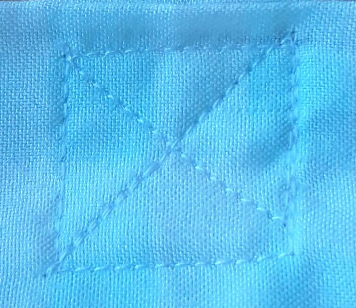 Step 6: Reinforce the handles on either side of the bag by sewing an 'X' shape (you can find this type of reinforcement on a lot of commercially made bags) and this helps to allow the bag to carry heavier items.