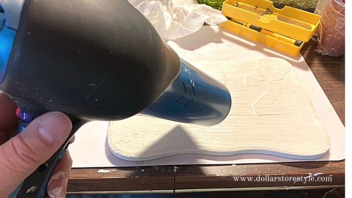 You can use a blow dryer to dry craft paint quickly between coats. Some crafters invest in a heat tool but others have found that their blow dryers, set on high heat, works just as well.