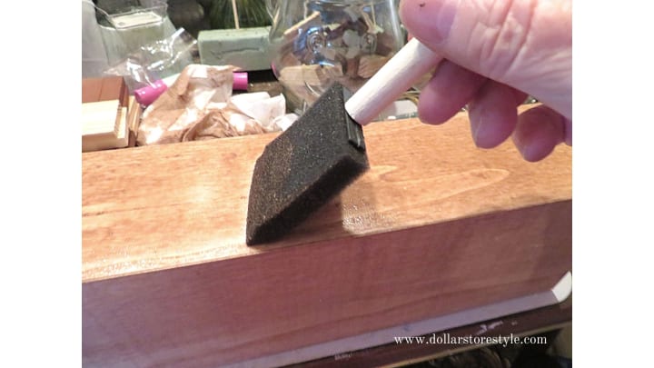 I also learned that you can use regular craft paint as a stain by adding water to it. You just brush it on and wipe off the excess to bring out the natural wood grain. Cool!