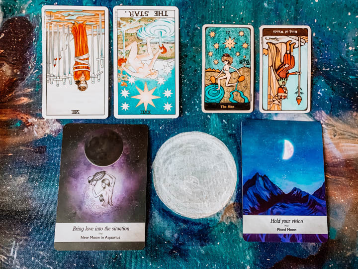 Hello group one! Let’s talk about The Star in reverse first. The Star in reverse suggests that you are experiencing a lot of anxiety, hopelessness, boredom, and lack of inspiration. You’ve lost interested in things or hobbies that normally tend to excite you. This is mostly likely because you are being consumed by negative thoughts. The King of Wands in reverse also suggests that you are lacking energy and enthusiasm. Many of us are in sort of a funk right now given our current situation. Despite how positive and happy others maybe presenting themselves, it’s completely normal to not feel so positive right now. We are experiencing a lot of uncertainties and things that are frightening. One thing we do know for sure is that this situation and these feelings won’t last forever. The Star upright and the Eight of Swords in reverse tells us that there is in fact a light at the end of this dark tunnel. Feelings of freedom, relief, and hope are on their way to you! I sense that you’re overwhelmed with these feelings of hopelessness and worry but you don’t quite know how to change that. The New Moon in Aquarius card says “Bring love into the situation.” This is exactly what you need to do in the meantime in order to make that change. Practice more self love and self care. Allow yourself to release all of the anxiety and negativity you’ve been so focused on so that you can heal and move forward. As I said before, these circumstances won’t last forever. The Fixed Moon card says to “Hold your vision.” Hold on to hope and let go of fear. Be patient and take it all one day at a time. Soon you will feel like yourself again. You’ll feel inspired to do the things you love and to create. Give yourself time to heal and take good care of yourself.