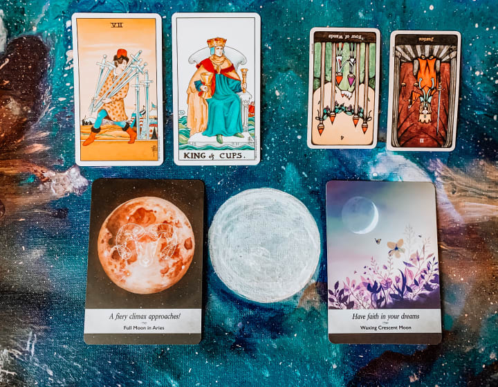Welcome group three! Let’s start off with the Seven of Swords. This card suggests that there’s been some type of betrayal or deception in your life and you may or may not already know this. The Justice in reverse card also suggests that you’re being treated very unfairly in a situation. The Four of Wands in reverse tells us that this situation has brought on a lot of self doubt and insecurity for you. The good news is, you’re learning how to control your emotions and accepting what you cant change about this situation. Some may mistake your kindness and compassion for weakness, but you are far from weak. Even though you may not have created this situation, you can still decide how you’re going to react to it. Your emotional maturity in handling this situation is going to help you prevailed. The Full Mon in Aries card says, “A fiery climax approaches”. The situation at hand about to peak and it could get very heated. Be calm and don’t make any rash decisions. You are about to be blessed with new found peace very soon. It’s time to cut out whoever or whatever has been putting you down, allowing you to finally focus on yourself. The Waxing Crescent Moon card says, “Have faith in your dreams”. Again, it’s time to focus on yourself as well as your goals. Find the courage to keep on going and stay positive. You are capable of so many amazing things! Leave the thing that’s holding you back in the past and don’t look back!