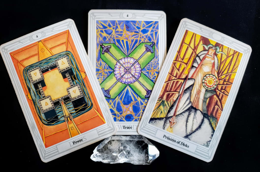 The fours of the Tarot are about feeling settled or slowed down, taking a break and contemplating the current situation. At times this can seem like things are stalled or blocked which can be frustrating however the slowdown time gives us a chance to look at what’s happened up to this point. With the suit of swords, we’re dealing with our intellect, the weapons of the mind. This being the case, we may find ourselves thinking of ways to justify the work we’ve done and the things we’ve accomplished. Given this break in the action, so to speak, this week should be a particularly good time to look at what’s been going on in our lives. What things do we feel strongly about? What needs clarification? Is there something that’s been left unsaid that eats away at confidence or trust or understanding? If you’ve been holding back from telling your boss that a colleague isn’t pulling their weight or telling a loved one that you really do care about their issues or even telling someone you need help, whether sensitive, frightening, important or even silly or inconsequential, this week finding the words and the timing seems right at our fingertips.