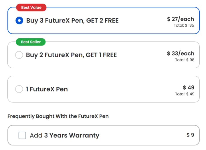 Two free FutureX Pen and three FutureX Pens at $27 each