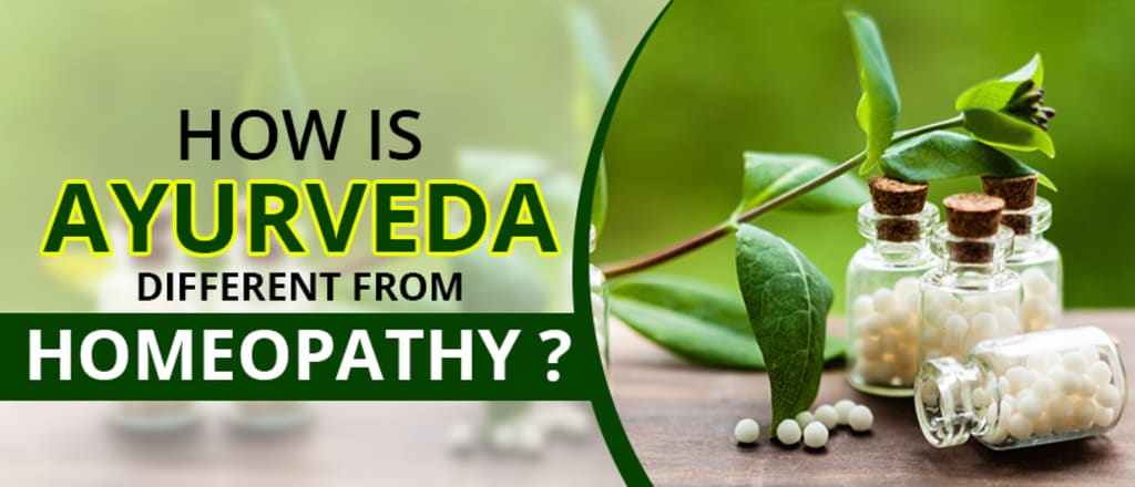 Homeopathy is also an alternative system of medicine. The term homeopathy is made up of two words (Origin from the Greek Language) ”Homoios,” which means like, and “Pathos,” which implies suffering. It is based on the principle that like cures like. Homeopathy stands out on the ideology that food that can cause symptoms in a healthy person can be taken in a significant amount by a person with the same disease. These foods, which act as homeopathic medicines, trigger the body's immune system to fight against the disease. Based on these, some of the key points that create a rift between Ayurveda and homeopathy are as follow: