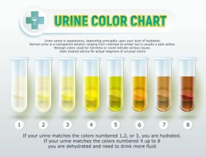 A simple way to check hydration levels is by looking at urine color. Light yellow indicates proper hydration, while dark yellow or amber suggests dehydration.