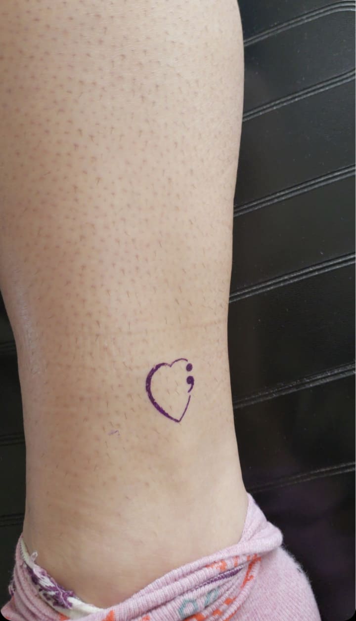 In September, 2018 Ink Therapy Lansing teamed up with Lansing Out of the Darkness Suicide Prevention for a special tattooing event in which customers could walk in, select a pre-created tattoo featuring the semicolon (a symbol of solidarity between people struggling with mental illness and used as inspiration to carry on for those struggling with thoughts of suicide), get inked for just $15, and 10% of the proceeds would go toward suicide prevention and awareness. Honestly, I don’t think I could have asked for a better first tattoo in my soon-to-be series of kintsugi inspired ink, so with a healthy dose of enthusiastic motivation from my amazing roommate, I went in, picked out a design, and got my first tattoo.