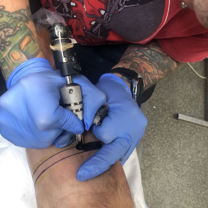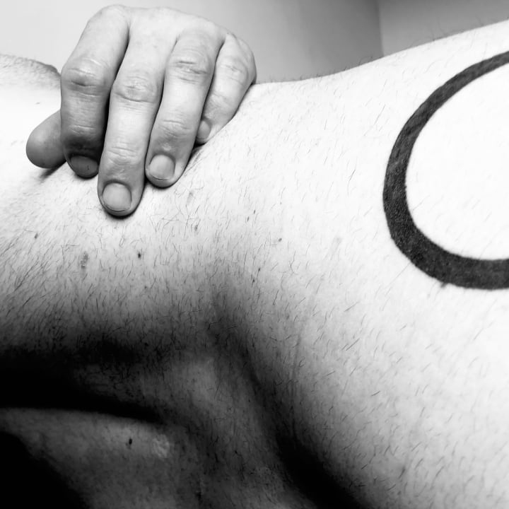 In 2020, during lock down I had a friend finish my movement symbol with another circle and another line transversing through my elbow joint. Now the tattoo really moves as well and changes and transforms as I move. I can see patterns in all the tattoos, how they dance and play on my body in relation to each other. I document my tattoo process and share images on my Instagram @circleslinesmovement. I see all my pieces as one work of living art, my body as art, as a self expression that is unique to me.