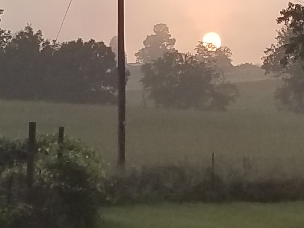 While it blocks my view of the pasture in front of my house, I notice the tree branches just to the left appear to have some sunlight dancing on the leaves. I am curious. These past few mornings have been overcast and gray since last week's storm, so this glimpse of the sun's rays is a hopeful and welcome sight.