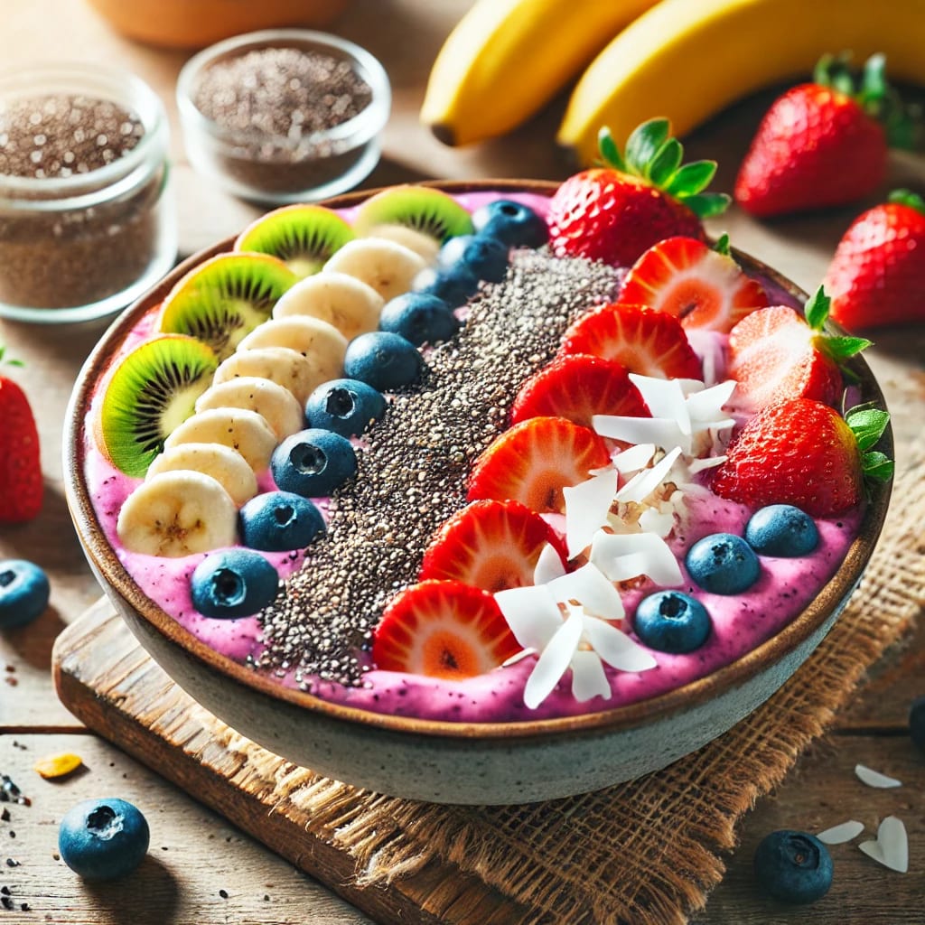 Fruits (bananas, berries, mangoes, apples) for natural sweetness and fiber
