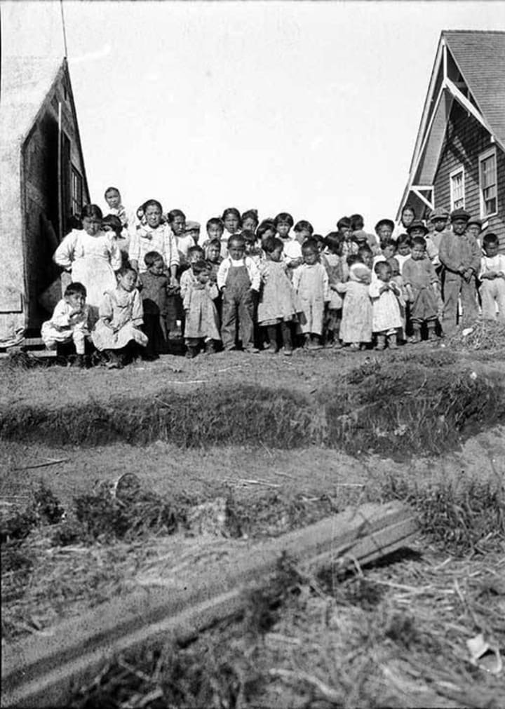 What followed was an atomic bomb of sickness. Villages were devastated—more than half of Wales died, and 90 percent of Teller Mission was killed. Many froze to death, as there was no one to keep the fires going, and others didn’t have enough food. People ate their dogs and dogs ate people who had been left unburied. Kids were left without parents. Whole villages disappeared. The influenza spread to other parts of Alaska too, from Nome and other cities.