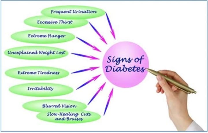 Persons may have type 2 diabetes present in their bodies for a long period of time and may not be aware of it. There are some signs and symptoms to look for that can be indicators to being a pre-diabetic or type 2 diabetic. Some of these signs and symptoms are listed in the diagram.