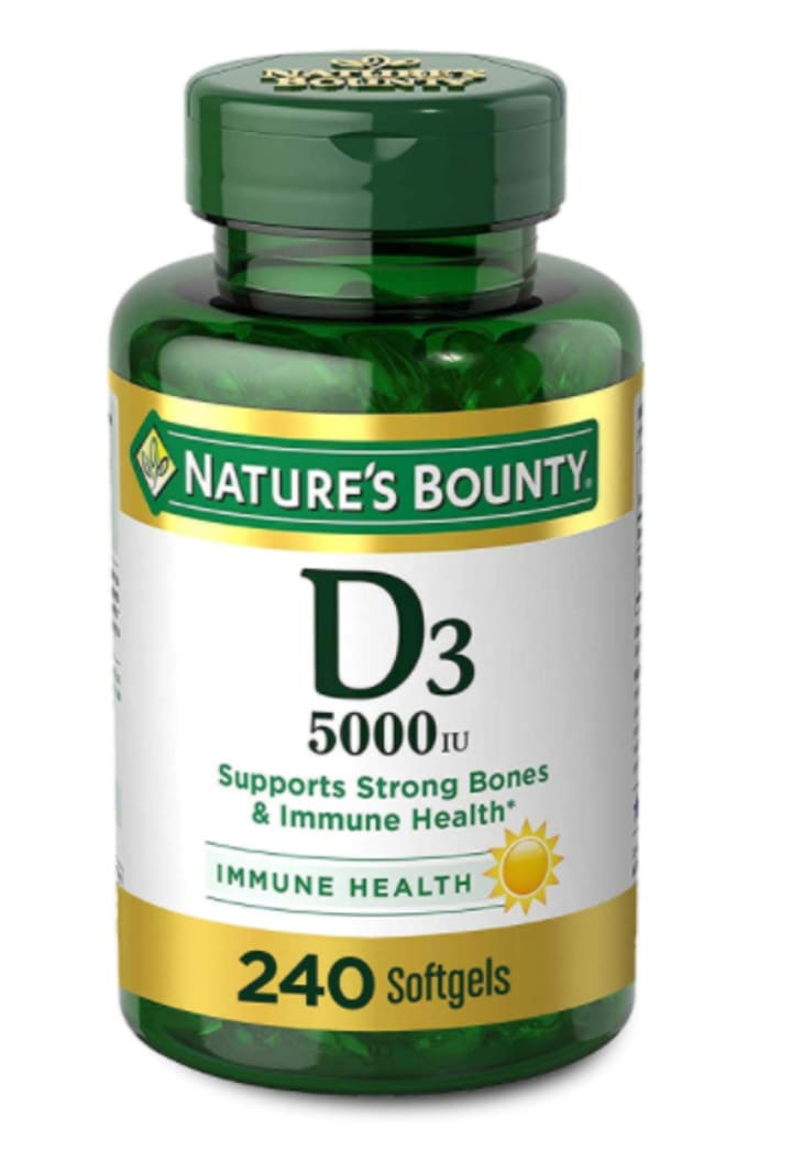This writer has been taking Vitamin D for many years. The supplement was recommended by her physician because blood tests indicated a deficiency in her Vitamin D level. She takes 5,000 units per day of the soft gels. (See photo above).