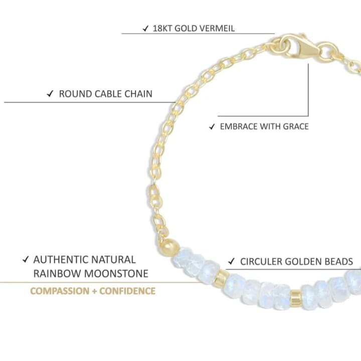 Moonstone jewelry should be handled with care to prevent scratches or damage. Always store your moonstone bracelet separately from harder stones like diamonds or sapphires.