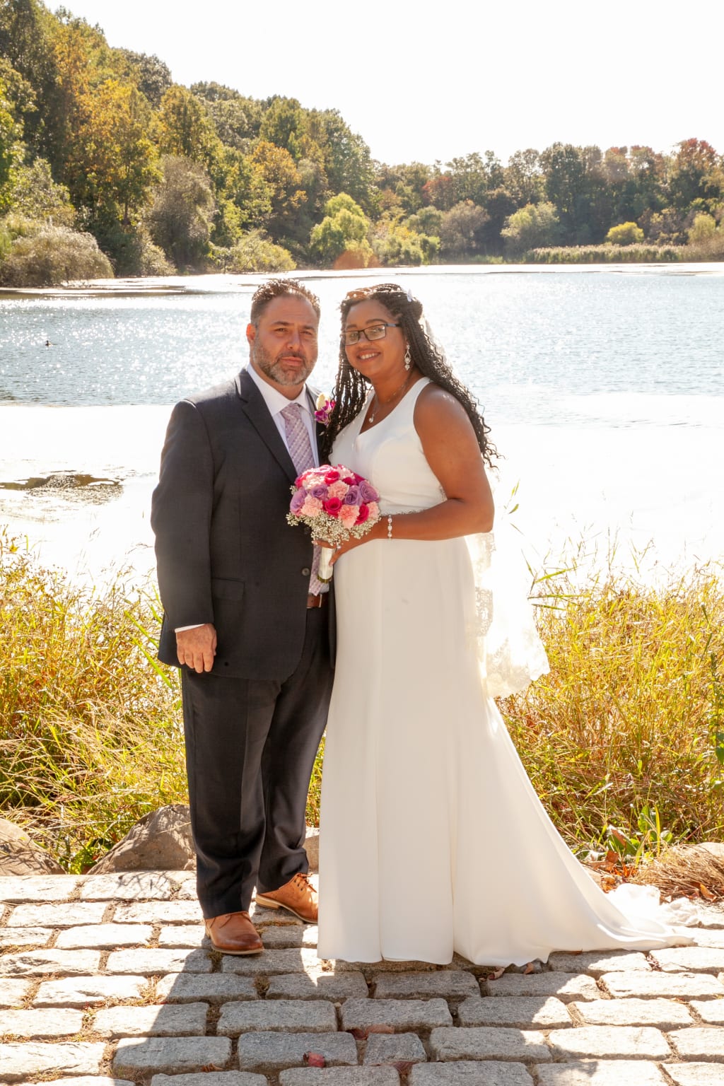 First off we knew we wanted friends and family at the wedding. We completely respected those who could not attend out of fear. We sent out invitations explaining that we decided that we would prefer to hold two wedding receptions and if there was anyone with symptoms they should not attend. The first half of about 20 people came to our wedding ceremony in a local park near where we live. We paid the $25 permit fee and chose a small section of the park overlooking a pond. Everyone was socially distant and wearing a mask. We didn’t know if holding a wedding at a park would attract people, but it turned out anyone that was there watched from a distance and applauded us. A woman I had never met greeted me as I came out of my mother’s car. She’d seen my husband to be and a few guests and said, “Well honey we’ve been waiting for you.” Getting well wishes from strangers turned out to be an extra nice part of the day.