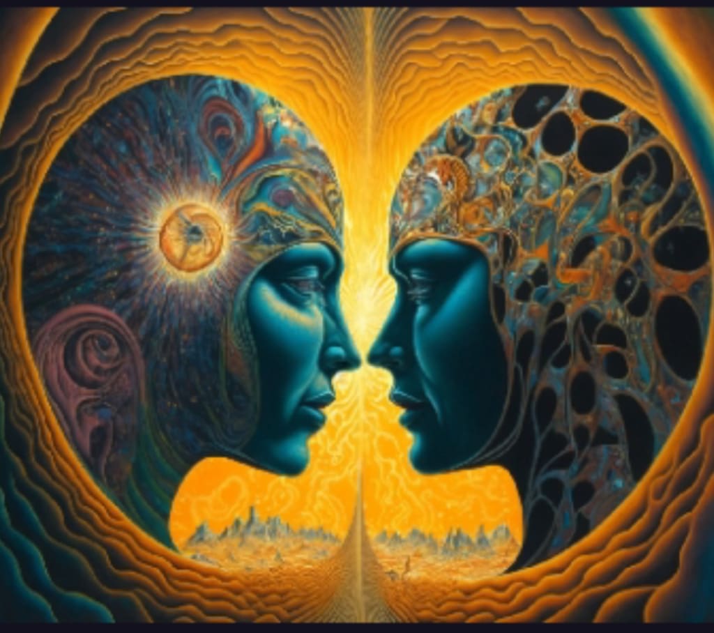 Her eyes, filled with a myriad of emotions, met those of the shadowy figure across the room. They were not strangers; they were two souls intricately connected by a tapestry woven with threads of understanding and misunderstanding.