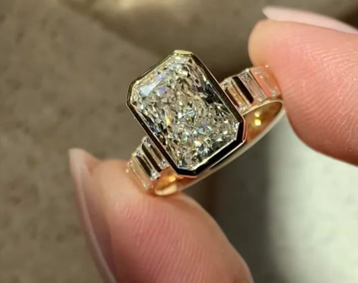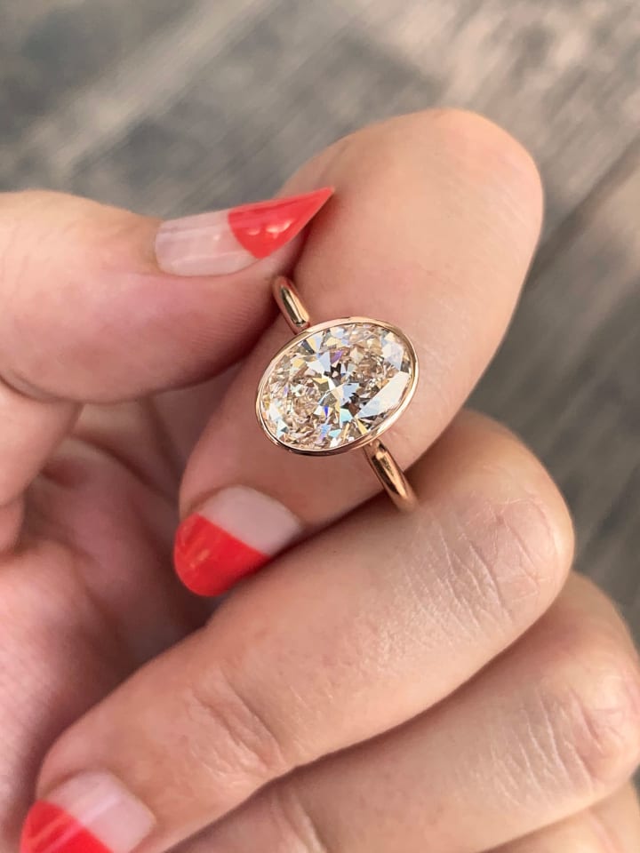 In this modern and protective style, a thin rim of metal surrounds the diamond, either fully or partially. It's ideal for people who have busy lives or who like a simple, elegant design.