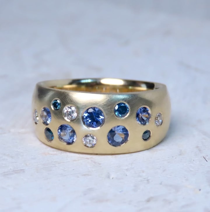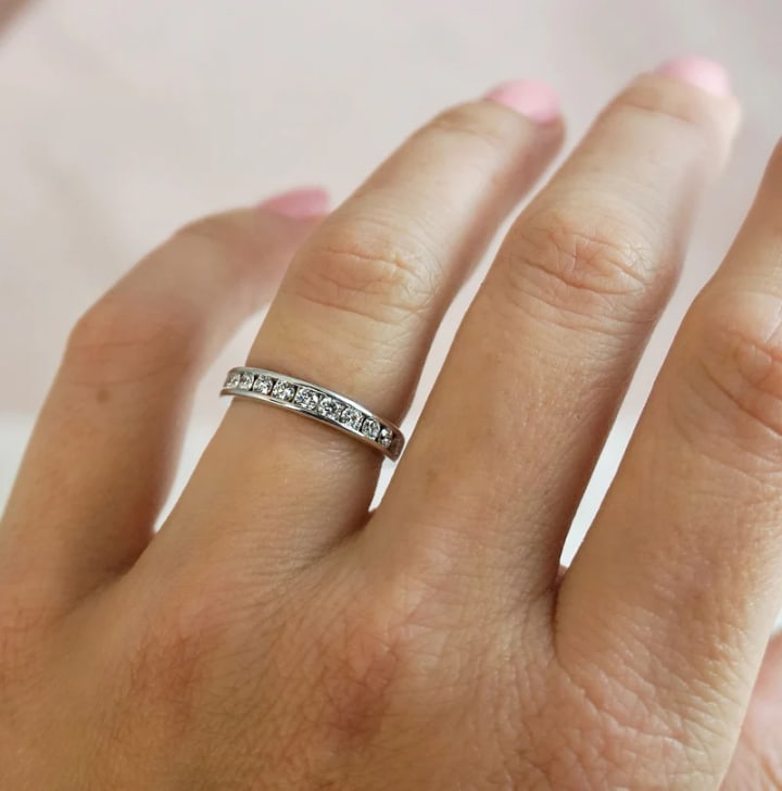 Small diamonds are placed in a row between two strips of metal. It gives the stones a smooth surface and superior protection, making them perfect for everyday use.