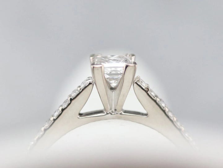 The prong setting is a classic favorite. It uses slim metal claws (usually four or six) to hold the diamond securely. The stone has remarkable brilliance because of this placement, which lets the most light into it.