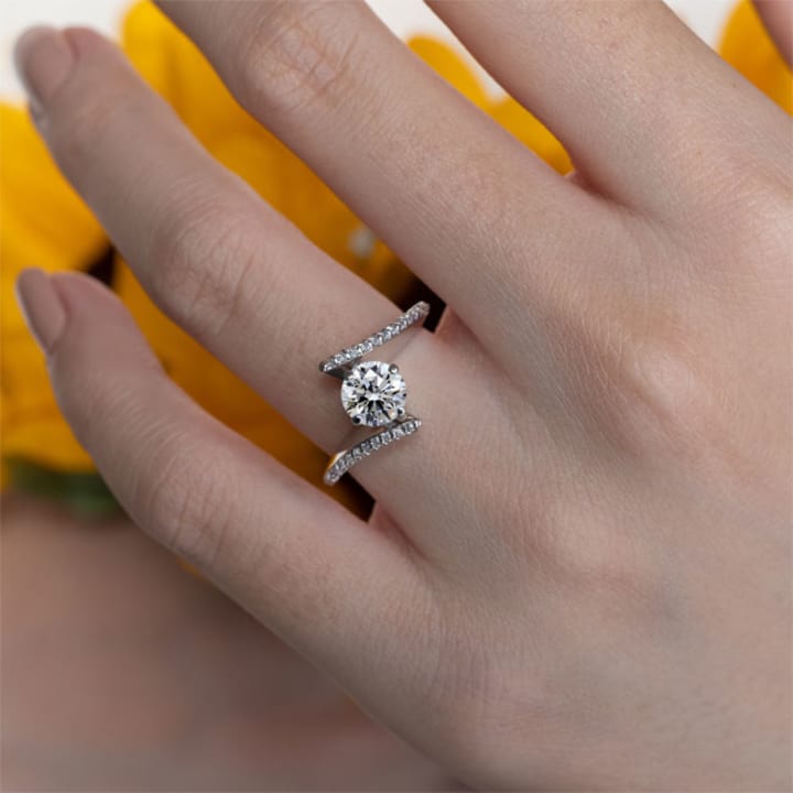 The band twists or curves around the centre stone, creating a sense of movement. This romantic and artistic setting is great for non-traditional styles.