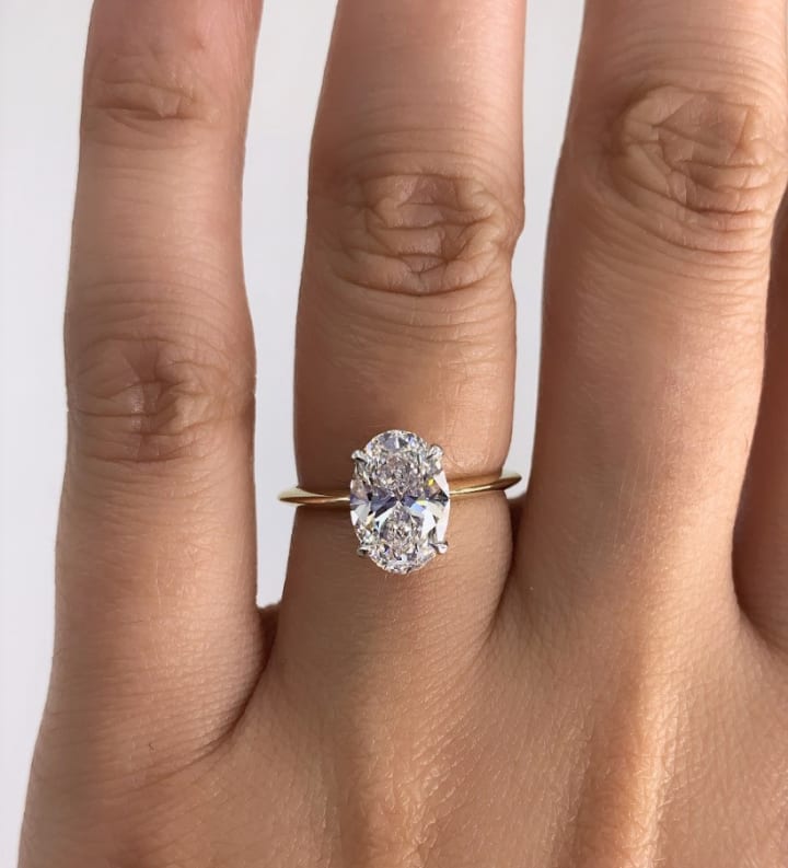 The diamond appears to hover above the band, held in place by hidden or minimal metal support. It’s sleek, airy, and eye-catching.