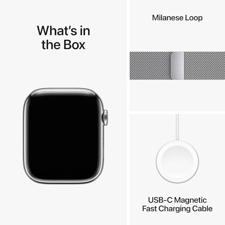 The Apple Watch Series 9 [GPS + Cellular 45mm] with its Silver Stainless Steel Case and Silver Milanese Loop combines elegance with functionality. Packed with advanced fitness and health tracking features, a vibrant Always-On Retina Display, and enhanced connectivity, it’s the ideal smartwatch for those who demand both style and substance in their wearable devices. Stay connected, stay fit, and stay ahead with the Apple Watch Series 9