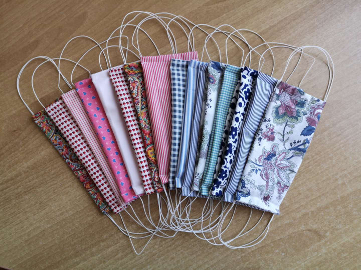 this is how Elena describes her project of sewing and gifting colourful face masks to family and friends.