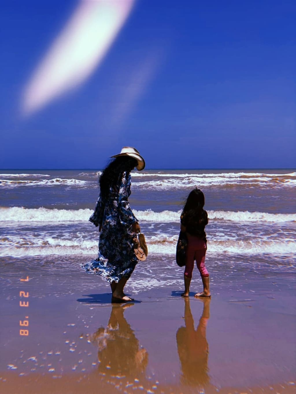 Placing my palms above the surface, I feel the ocean softly brushing itself over my hands and cooling myself.