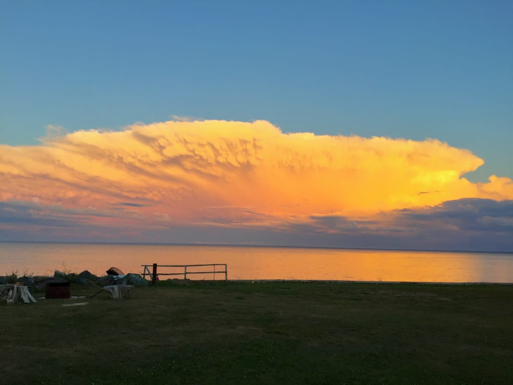 I took this picture in Petit-Rocher, on the north shore of New Brunswick Canada. On this particular evening, a huge thunderstorm was approaching. Within less than an hour, the sky became dark, things got quiet and silence filled the air. The clouds covered the sky and the height of them was breathtaking. Most of us have seen plenty of thunderstorms but they all bring their own personality.