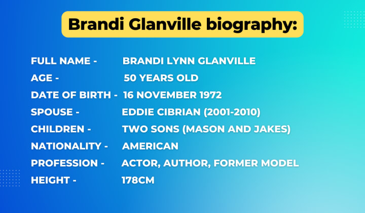Ans. Brandi Glanville’s birthday is on 16 November16 November 1972